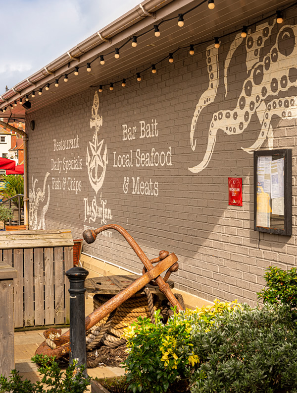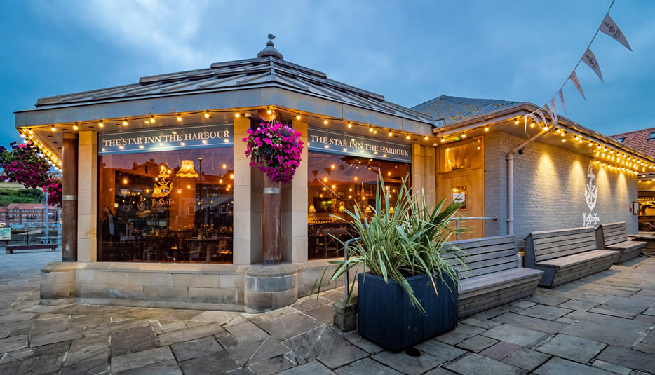 The Star Inn The Harbour's Menus feature Catch-of-the-Day fish and meat specials and also world famous North Yorkshire Moors produce, such as furred and feathered game, as well as a seasonal All Day Menu. Desserts include some childhood Ice Cream Parlour classics brought up to date. Surf 'n' Turf-style dishes are a restaurant speciality mirroring its 'one-foot-in-the-sea-one-foot-on-the-Moors' location.